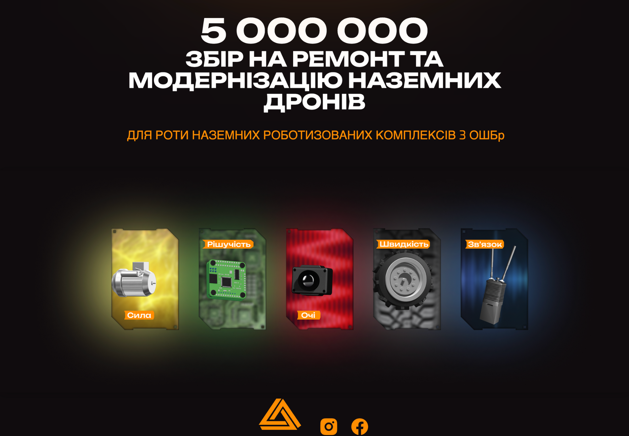 - закупівлю комплектуючих для розробки та модернізації наземних роботизованих систем;